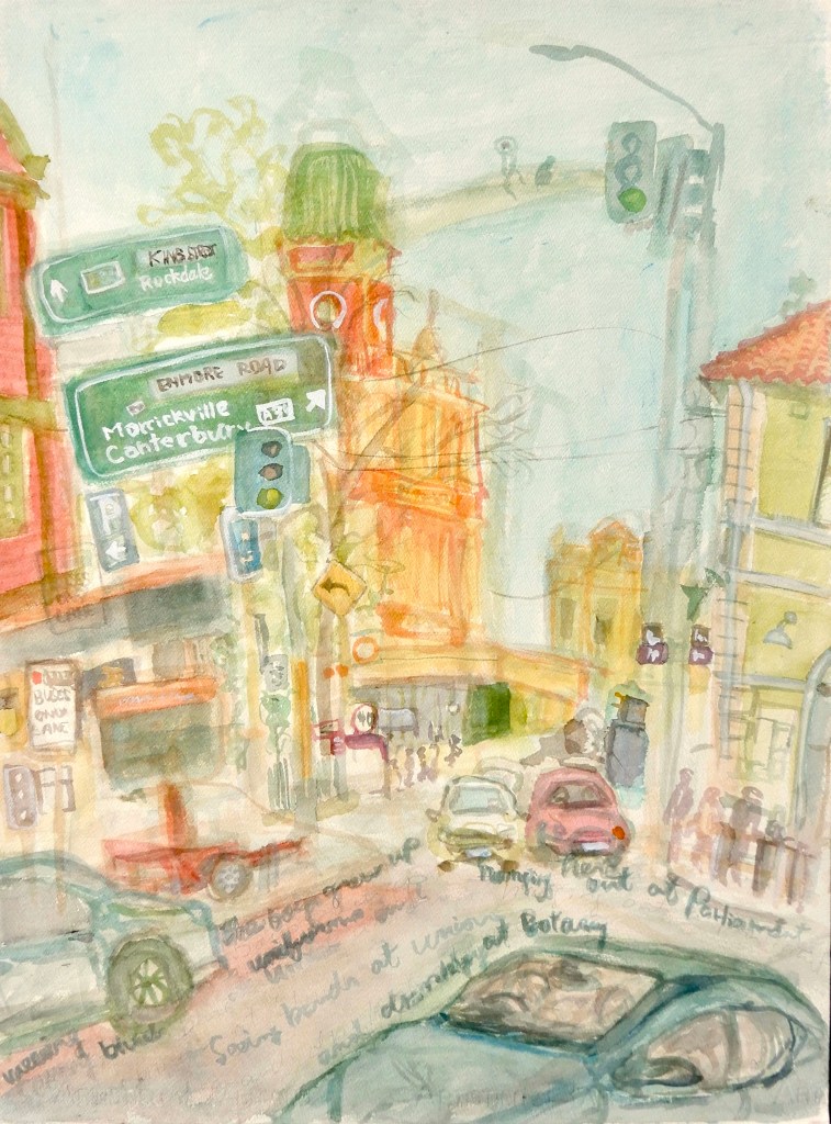 King St Intersection Newtown, 2025 Watercolour and watercolour paper 76 x 57 cm SOLD