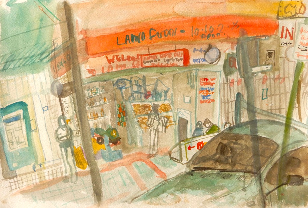 Lamia Foods Marrickville, 2021 Watercolour on Watercolour paper 33.5 x 50 cm
