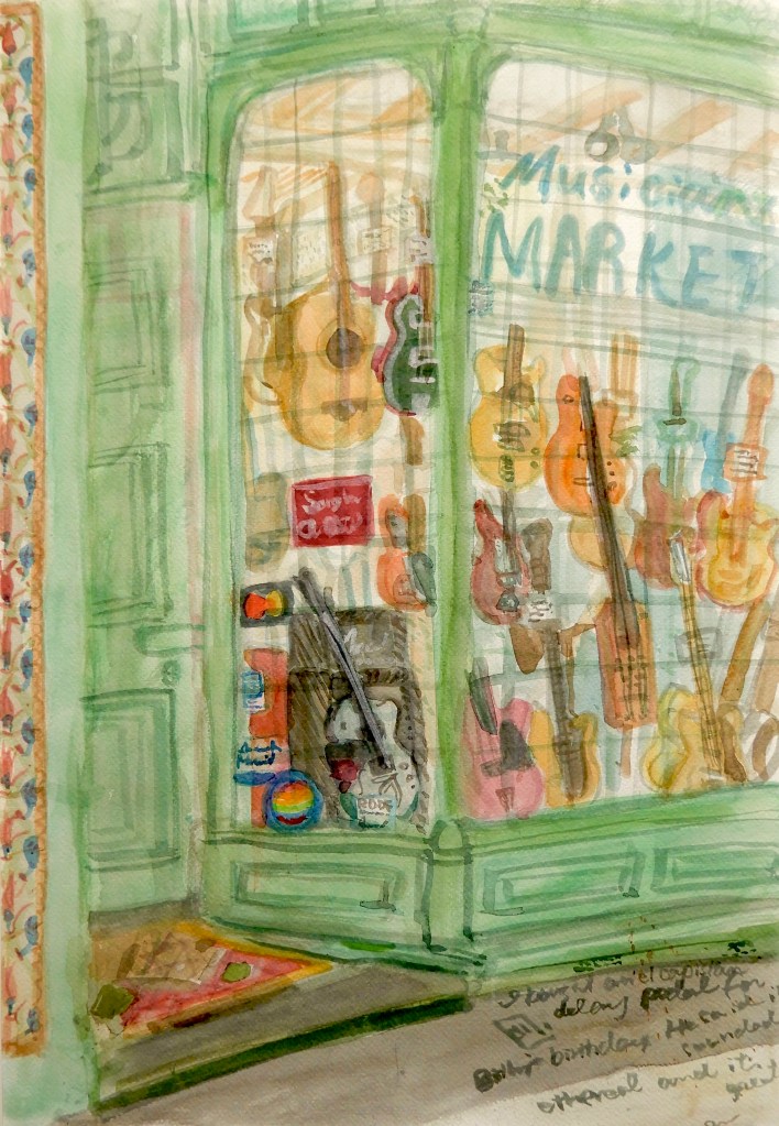 Pete`s Musicians Market Newtown, 2025 Watercolour on watercolour paper 50 x 40.5 cm SOLD
